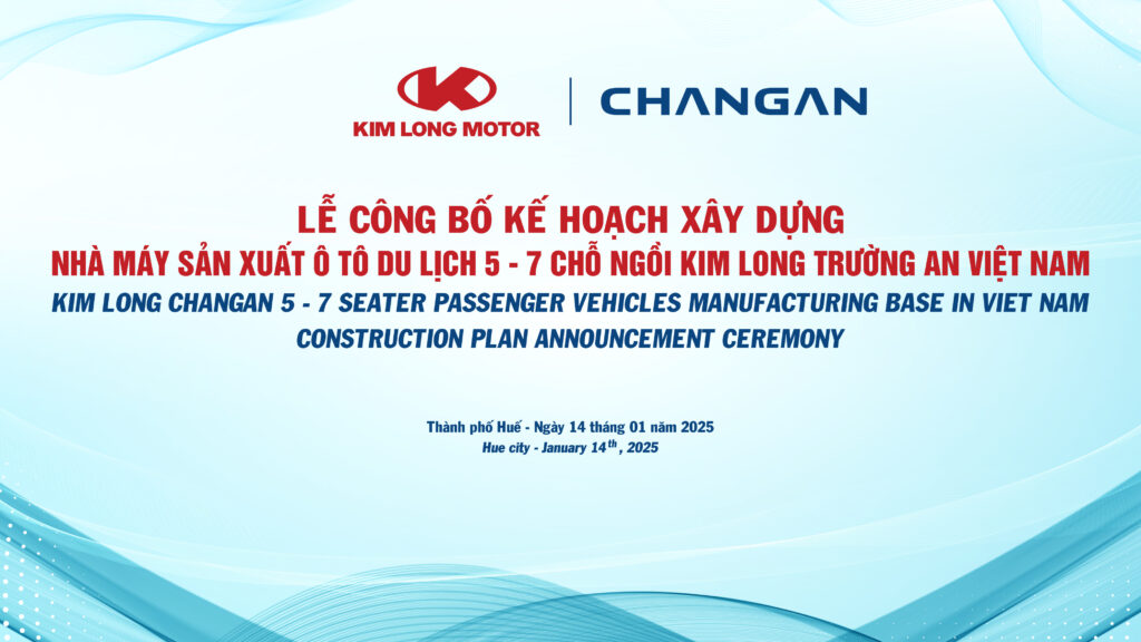 Công ty Cổ phần KIM LONG MOTOR Huế và Tập đoàn CHANGAN Automobile chính thức công bố kế hoạch xây dựng Nhà máy sản xuất ô tô du lịch 5-7 chỗ ngồi KIM LONG TRƯỜNG AN VIỆT NAM. Trong khuôn khổ sự kiện, Lễ ký kết thỏa thuận hợp tác sản xuất các loại xe giữa Công ty TNHH CHANGAN Automobile và Công ty Cổ phần KIM LONG MOTOR Huế đã diễn ra, mở ra cơ hội phát triển và hợp tác sâu rộng trong ngành công nghiệp ô tô khu vực.