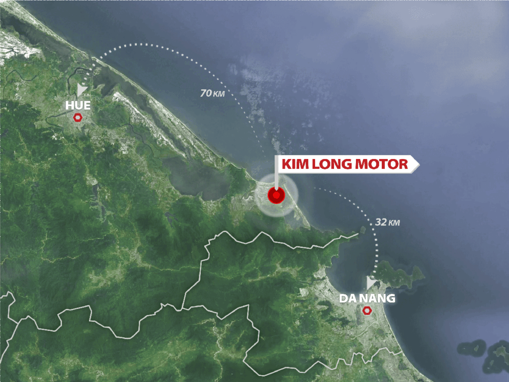 KIM LONG Motors 汽车园区位于越南中部的两个大城市中间,即岘港和顺化。如果说顺化是一座以旅游为主的城市,以保留人类有形和无形的文化遗产而闻名,而岘港则是越南中部的一个战略性港口城市,是越南5个直辖市之一。